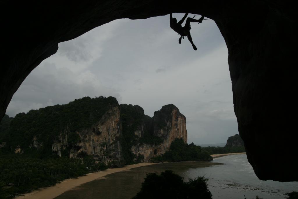 Burnt Offerings' crux is after 40 feet of vertical climbing and consists of pulling the lip onto the headwall. This is actually the picture that adorns the cover of one of the local climbing guides (different climber of course).