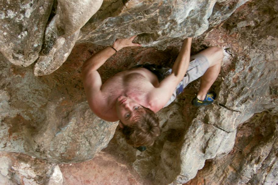 Here you see Tommy Butler from Austin bouldering the start of Fire Show.